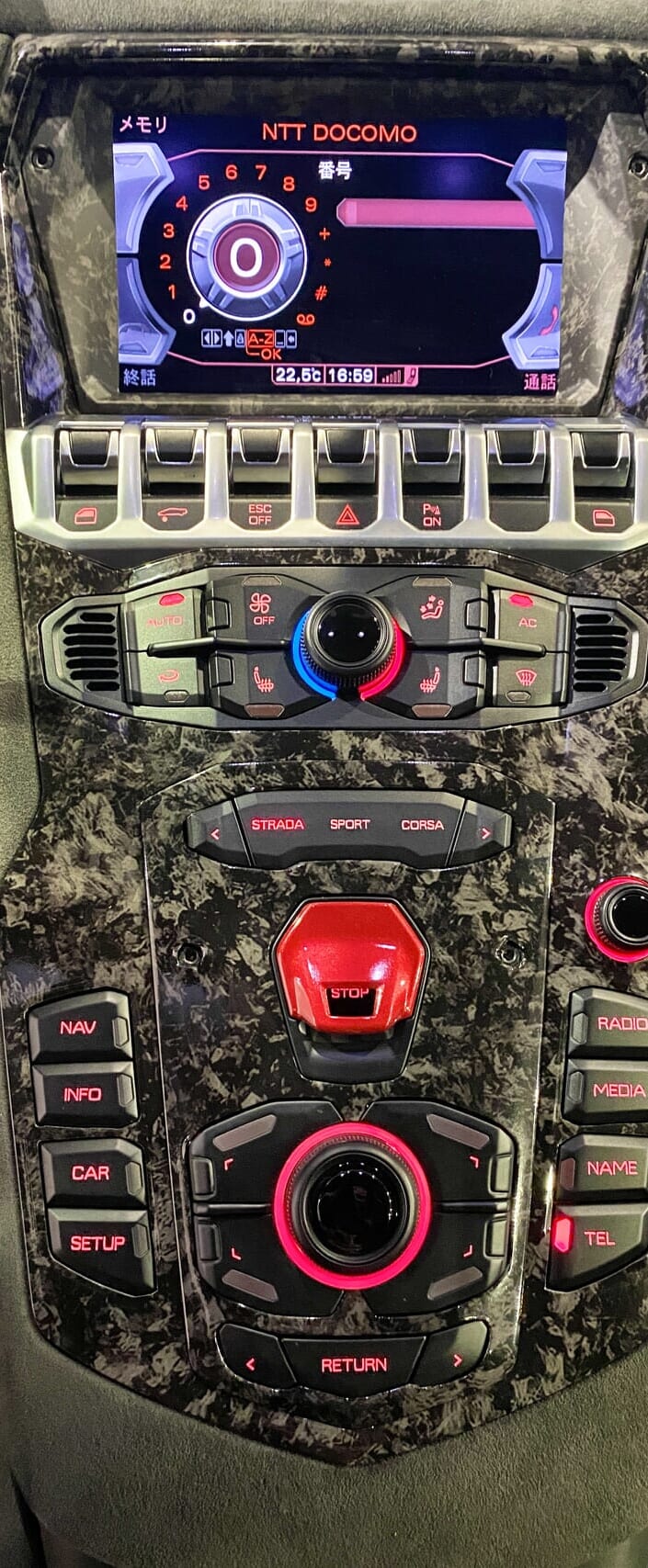 今回はランボルギーニ アヴェンタドールのセンターパネルにフォージドカーボンのグロス+マットの両方をクロスでラッピング施工いたしました!