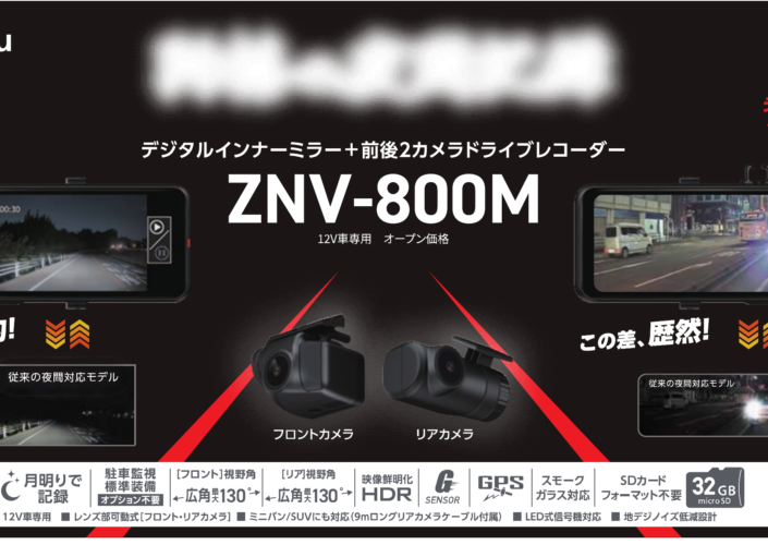 デジタルインナーミラー型ドライブレコーダー「ZNV-800M」